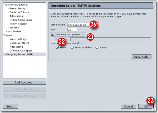| 19)Highlight 'Outgoing Server (SMTP)' |