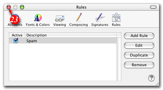 Your mail filter should now be in place. You should find that any filtered junk mail has been filtered out into the "Junk Mail" folder. The spam filter by default defines anything with a "spam score" of 4 or more as probably spam. You can personalise the filtering rules to be more or less restrictive by increasing or decreasing the number of asterisks after 'X-SpamDetect:'.For example, if you wanted to consider anything with a score of 3 or more to be spam, the rule would look like: 'X-SpamDetect: ***'. Decreasing the number of asterisks will result in Mac Mail classifying more e-mails as spam. You may need to check your spam folder more carefully for non-spam e-mails that might have been classified as spam. If you wanted to rate anything with a score of 8 or greater as spam, the rule would look like: 'X-SpamDetect: ********'. Increasing the number of asterisks may result in fewer filtered e-mails being classified as spam and more potential spam staying in your Inbox.