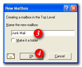 | 3)Enter a folder name i.e. Junk Mail | ||